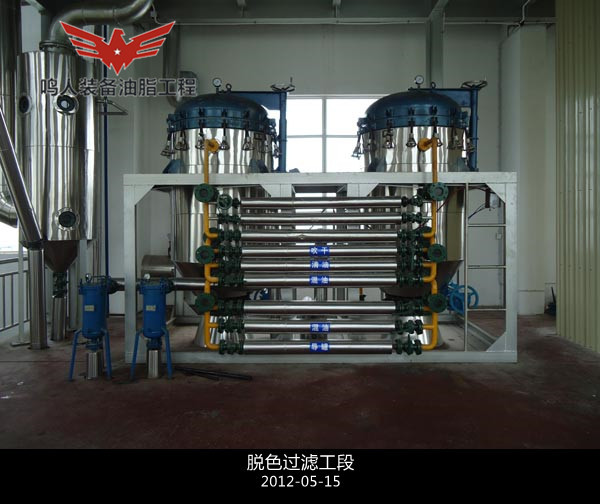 2、脫色工段采用預混與蒸汽攪拌連續脫色相結合的工藝,提高脫色效率,節省白土用量,操作簡單方便,負壓狀態避免空氣中氧氣與熱油接觸,...詳情介紹