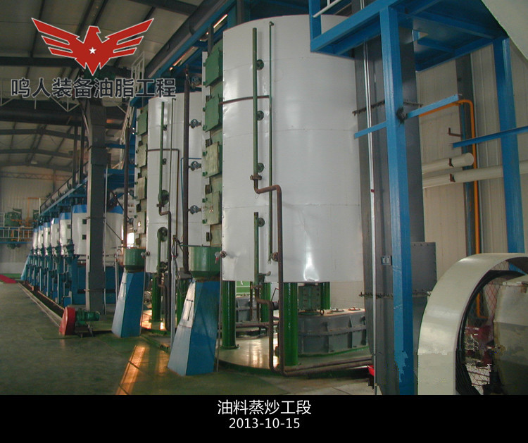 ...詳情介紹油料預處理是油脂加工過程中重要的一道工序,目的是改良油料的外形,以便快速有效的通過機榨或浸出制油。它通常包括以下一系列過程:對油料烘干、色選、破碎、軟化、去皮、擠壓膨化、軋坯、蒸炒和榨油等。主要設備:提升刮板、除塵器,分級篩、軟化塔、破碎機、風選器、軋胚機、膨化機、翻板冷卻器、蒸炒鍋等。